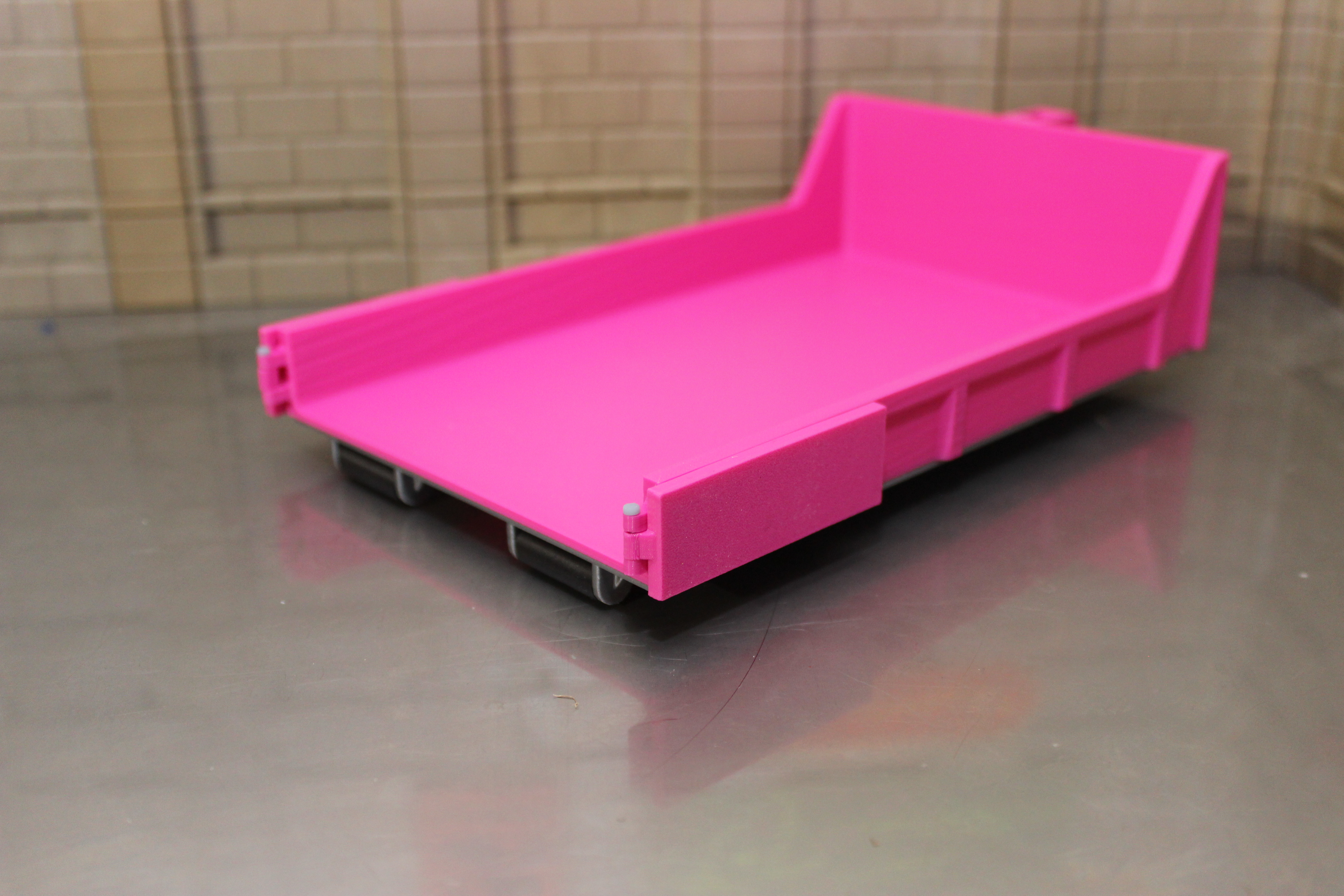 The skip can be pulled onto a swap body vehicle. Its flat design makes it possible to load material into the skip using a mini excavator.