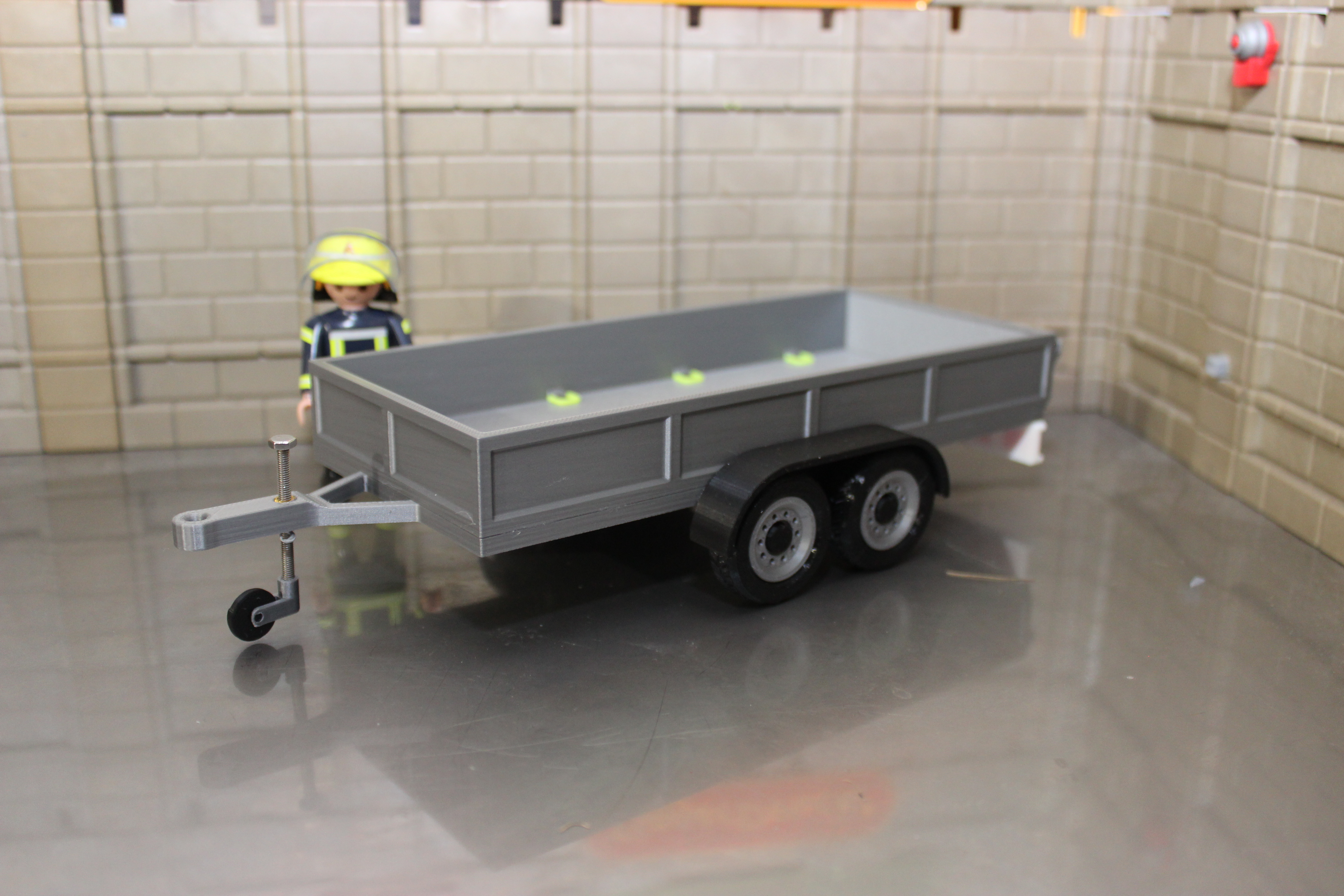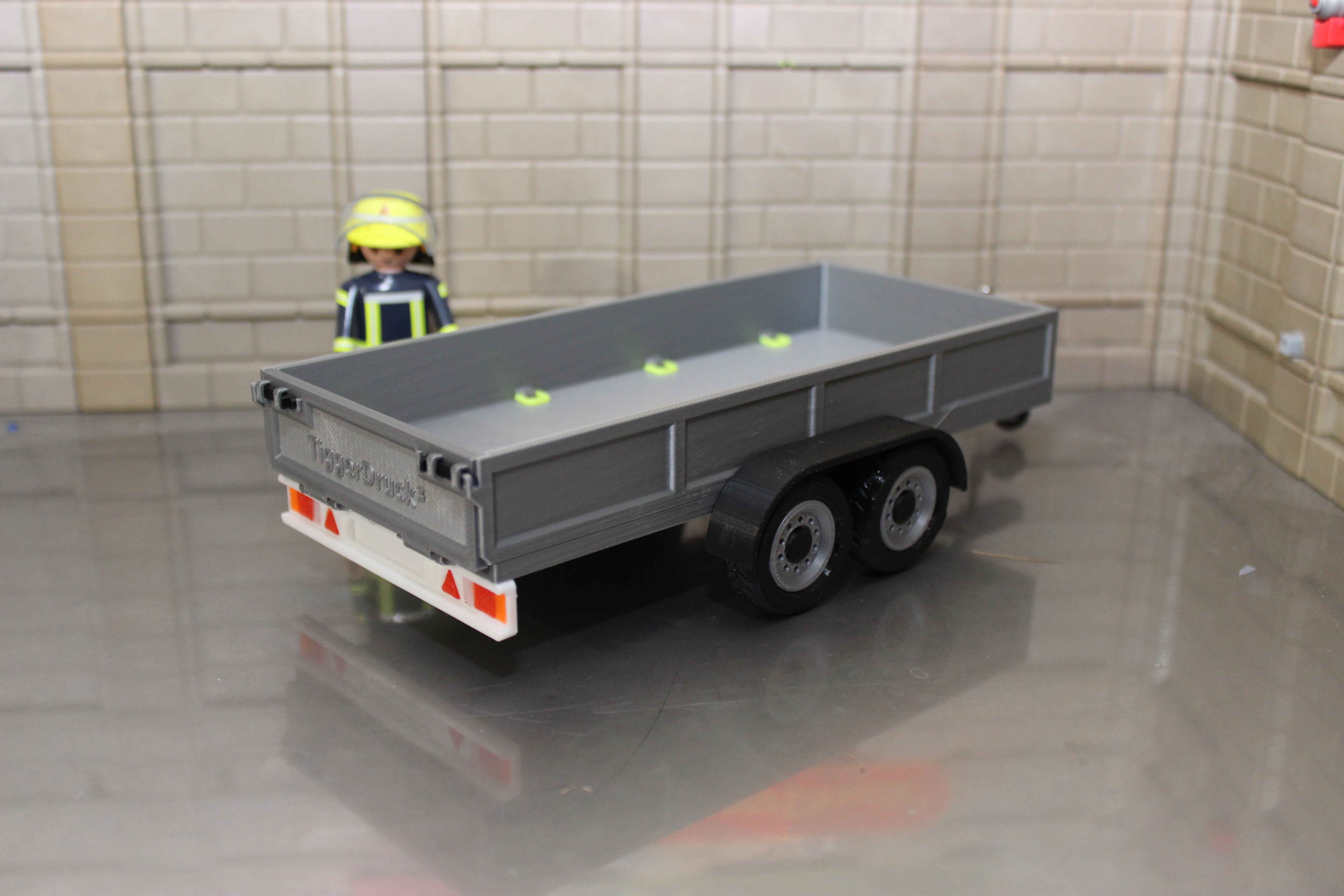 Der Anhänger ist sowohl für PKW als auch für LKW geeignet. Die Klappe ist zu öffnen, im Aufbau befinden sich acht Anschlagpunkte zur Ladungssicherung.